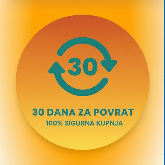 Ako iz bilo kojeg razloga niste u potpunosti zadovoljni proizvodom, imate punih 30 dana od primitka narudžbe da ga vratite. Proces je jednostavan i bez suvišnih pitanja, a mi ćemo vam vratiti cjelokupni iznos kupovine.